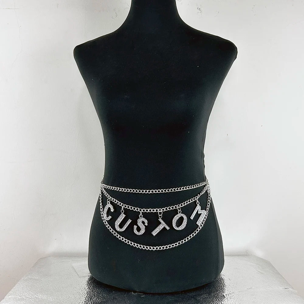 Crystal Custom DIY Big Letters Waist Chain Belt Sexy Women Personalized Statement Name Body Chain Cosplay Accessory Gift
