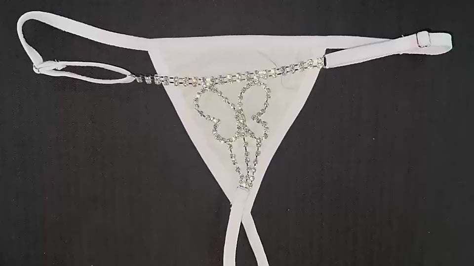 Add a touch of elegance and allure to your lingerie wardrobe with our Delicate Hollow Flower Rhinestone Thong. This exquisite piece features a stunning rhinestone design in the shape of a delicate flower, accented with a sexy waist chain for added glamour.