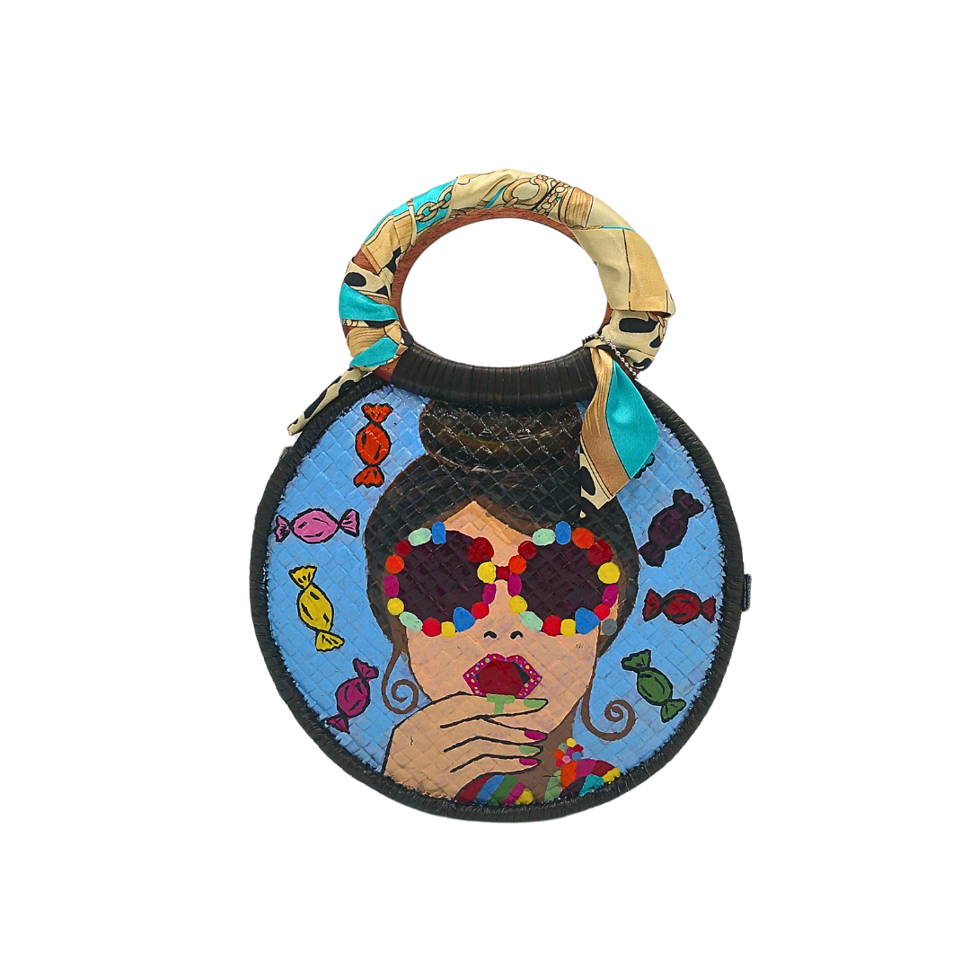 Enhance your accessory collection with our Handwoven Pandan Handbag/Crossbody Bag, a beautiful blend of vibrant design, eco-friendly craftsmanship, and versatile functionality. This stunning bag features a hand-painted colorful design on a base of natural pandan fibers, making it a unique and eye-catching piece that’s perfect for any occasion. The stylish scarf accent and adjustable strap add an extra layer of style and convenience, ensuring you can carry this bag in multiple ways.