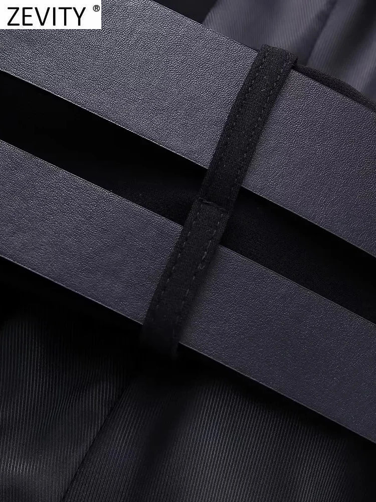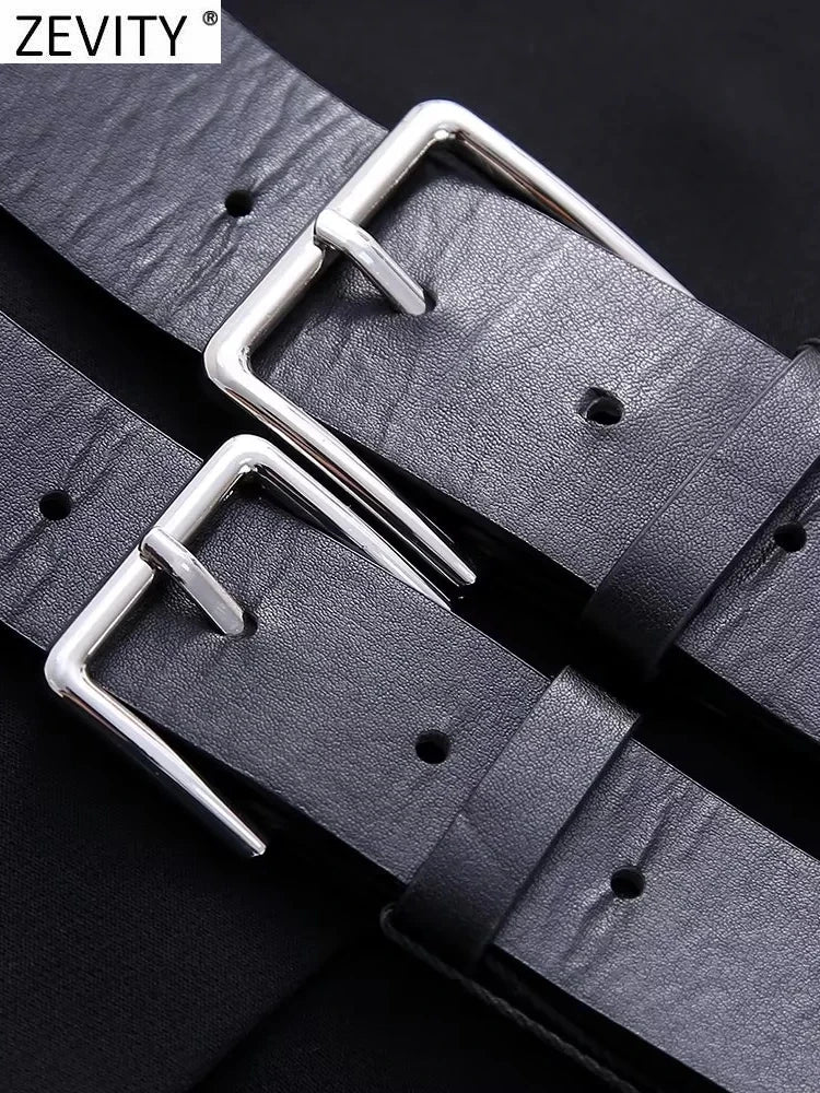 The standout feature of this vest is the double belt accent around the waist, which cinches the midsection to enhance your silhouette. The belts are adjustable and adorned with metal buckles, providing a sophisticated yet edgy detail. The vest's clean lines and tailored cut make it perfect for pairing with trousers, skirts, or even layered over a fitted dress for a chic, fashion-forward look.